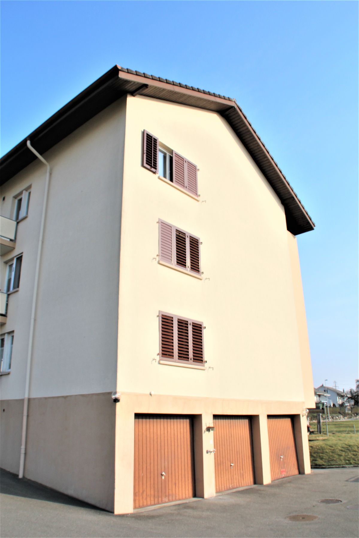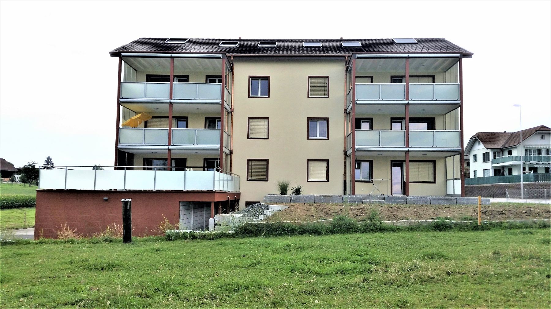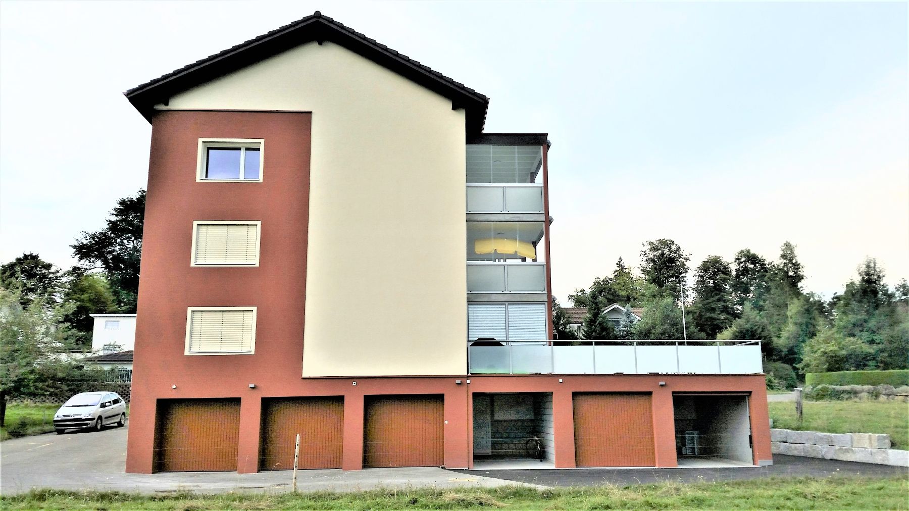 des weiteren wurden das dach und die fassaden zusätzlich gedämmt und die fenster wurden erneuert. da die vorschriften des kantons besagen, wie viele parkplätze ein mehrfamilienhaus benötigt, mussten noch drei weitere Autounterstände geschaffen werden. aufgrund dieser erweiterung profitiert nun der eine mieter von einer grösseren terrasse.