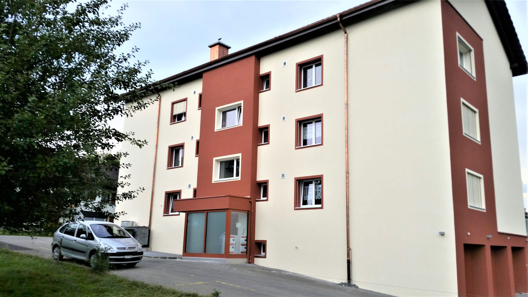 aufgrund eines wettbewerbs erhielten wir diesen auftrag. das ziel war es, möglichst kostengünstig das gebäude zu sanieren und ein neues erscheinungsbild zu schaffen. die gesamten sanitären und elektrischen installationen wurden ersetzt. somit auch die bäder und küchen. da der dachstock ungenutz war, konnte man die beiden obersten wohnungen zu maisonettewohnungen erweitern. das haus stammt aus den 1970ern, und hatte nur schmale balkone, weshalb diese abgebrochen wurden. anhand einer neuen stahlkonstruktion entstanden grössere balkone zum besser nützen.